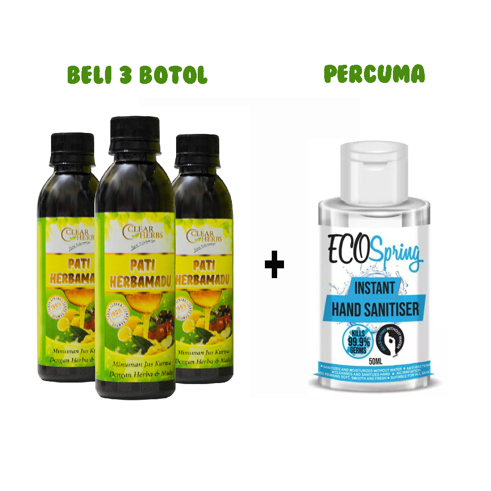 3 Botol Pati HerbaMadu Untuk AntiBodi & Vitamin C + FREE Hand Sanitizer