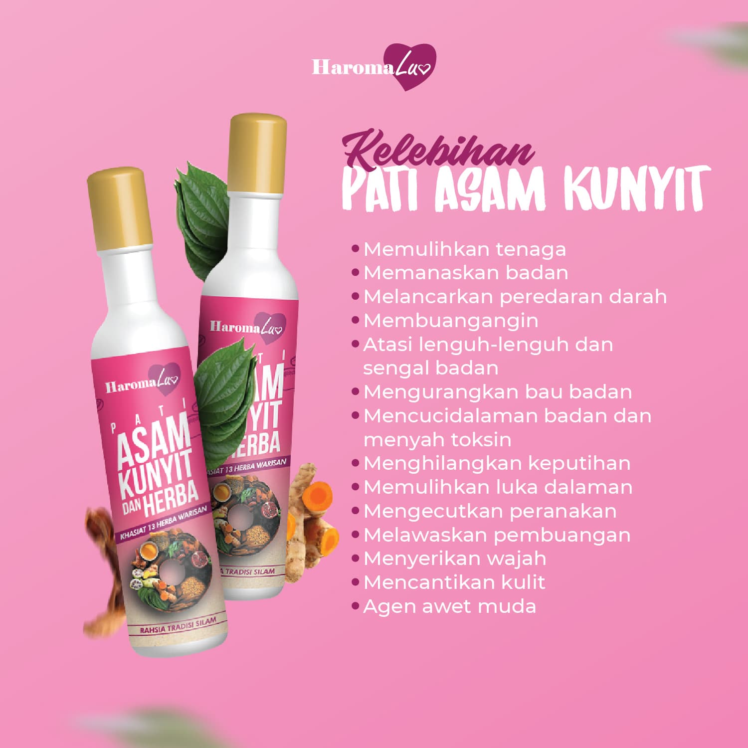 Pati Asam Kunyit & Herba, rahsia pujaan hati kansa ini merupakan penyelesaian terbaik buat wanita dalam memastikan kesihatan dan kecantikan luaran dan dalaman.
